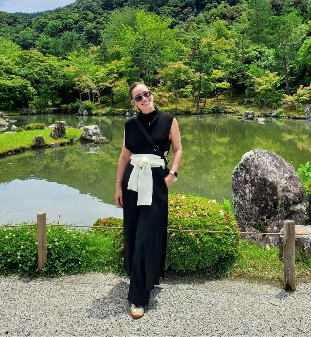 Valentina mide1,60 m y está usando un Top SM, el cinturon no es fijo, se puede usar con otros cinturones para darle otro look.