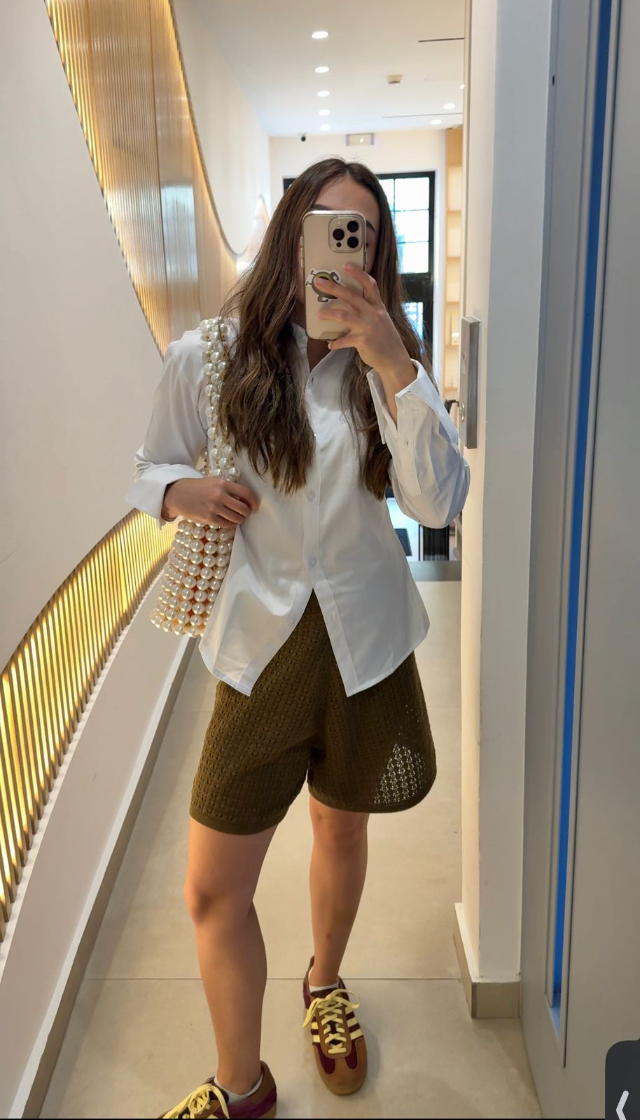 Bermuda en tejido de punto calado. Silueta Oversized y talle alto. Estructura ligera con caída natural.