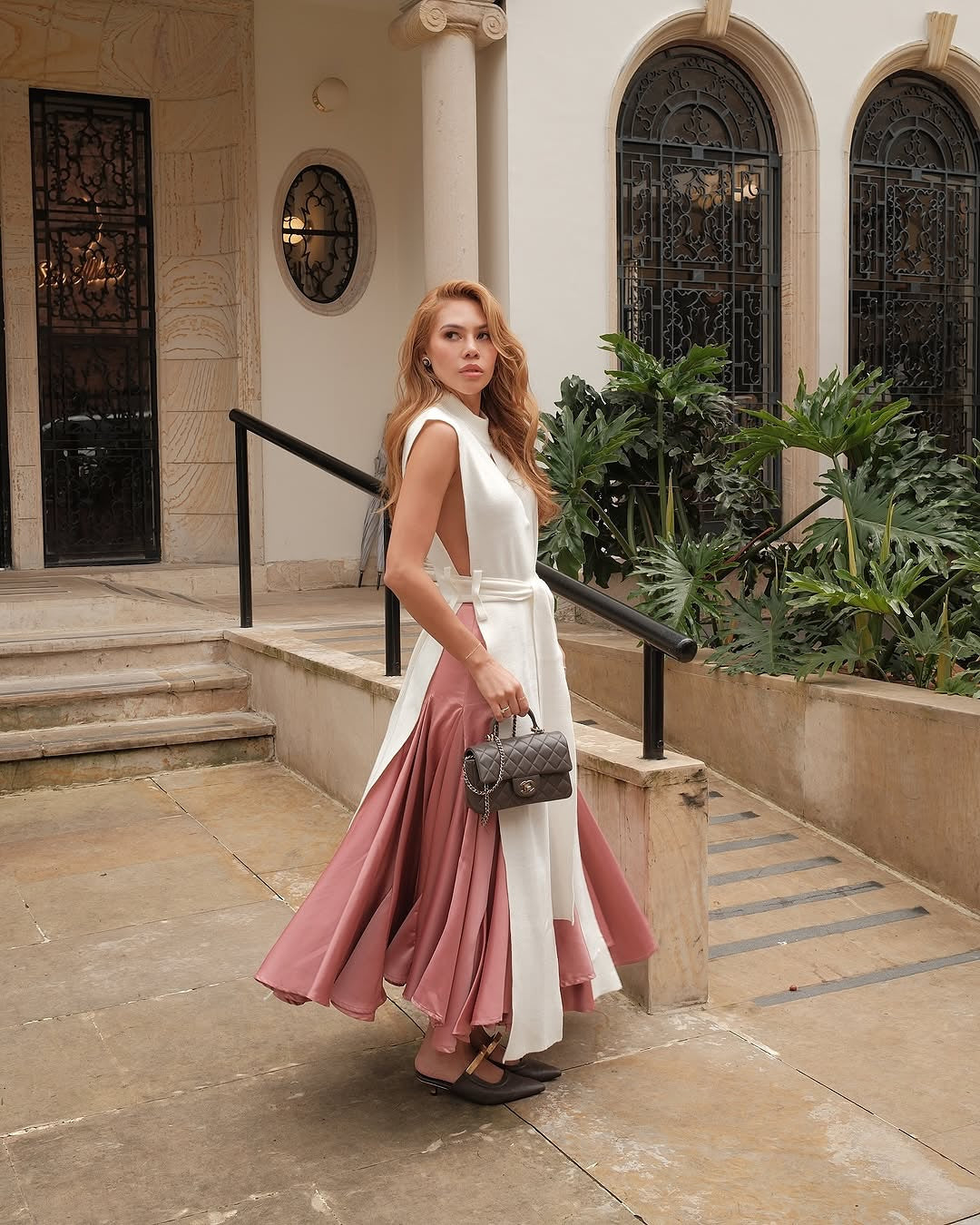 Valentina mide 1,60 m y está usando un Top SM, el cinturon no es fijo, se puede usar con otros cinturones para darle otro look.